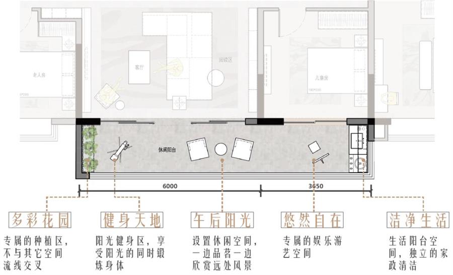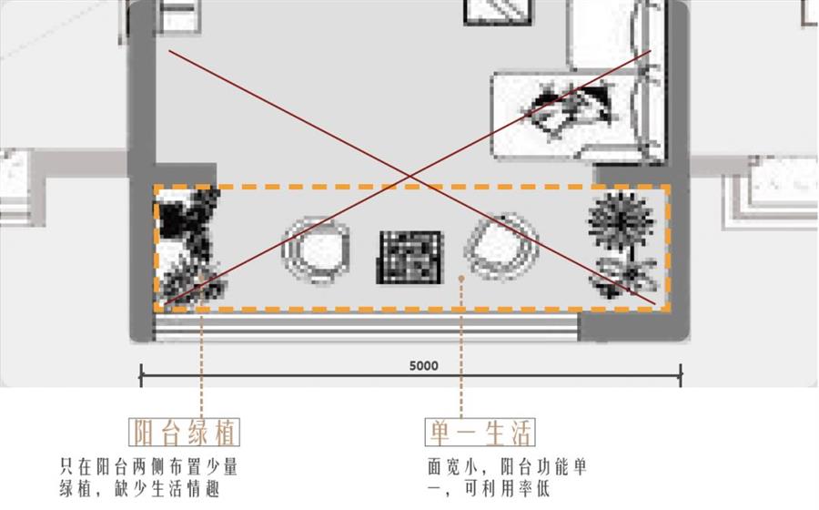 傳統(tǒng)戶型:傳統(tǒng)戶型僅在客廳區(qū)域贈送陽臺,面積小,功能單一,只能放置少量綠植以及晾衣區(qū),居住舒適度較低。
