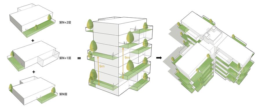 △露臺錯層設(shè)置 打造9m通高的空中庭院