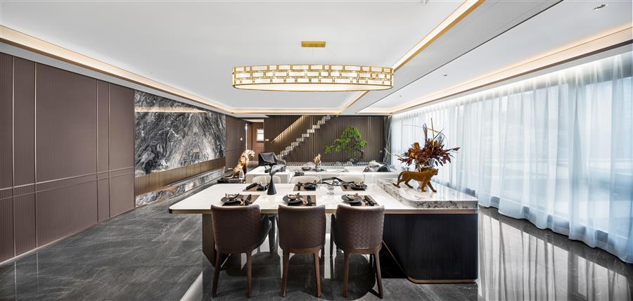 共享方廳均可以滿足360°環(huán)形動線,180°的無阻隔視野,讓固定的空間“流動”起來,縮短家居動線,增強了互動性,讓家庭的社交聚會變得輕松愉悅。