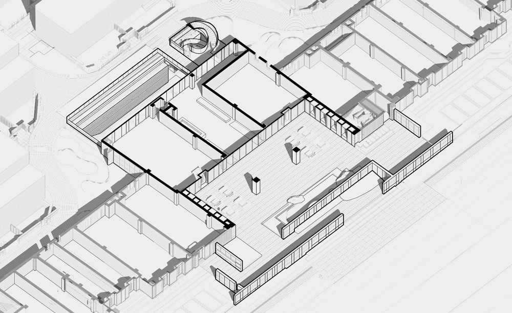 在與城市主干道相交的界面,示范區(qū)將公共空間水平延伸,與城市街道連綴成為一體,交替疊加,呈現(xiàn)地景般的場所。