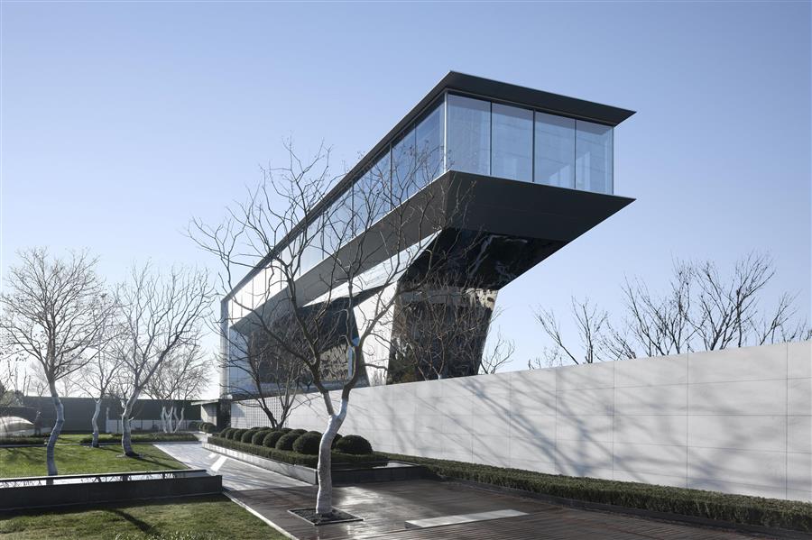 鋁板線腳與玻璃幕墻組合,將一層與三層立面構(gòu)成相聯(lián)通,形成統(tǒng)一整體,增強(qiáng)建筑形象的雕塑感及現(xiàn)代性。