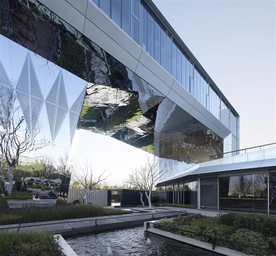 項(xiàng)目既要有擁抱江景的建筑姿態(tài)、又要營造純凈現(xiàn)代的城市美學(xué),在設(shè)計(jì)精度及施工工藝上較面臨了更多的挑戰(zhàn),從形體推敲到材質(zhì)選取,再到每塊鋁板的肌理、拼縫、安裝,燈光的配合等,都進(jìn)行了再三的考量。