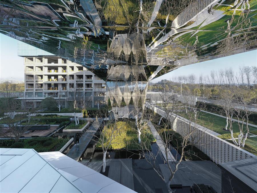 立面設(shè)計(jì)遵循功能與美學(xué)的協(xié)調(diào)統(tǒng)一原則,架空層與室外樓梯柱位置采用鏡面不銹鋼,增強(qiáng)了空間趣味,形成獨(dú)特的城市場(chǎng)所記憶。