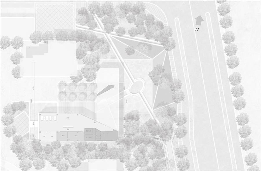 建筑設(shè)備機(jī)房及其他輔助功能空間有一定的開窗及通風(fēng)要求,不加以特殊處理,立面勢(shì)必會(huì)較為零碎。設(shè)計(jì)將所有設(shè)備機(jī)房布置在框景造型的肋部,既確保了建筑形體的整體性,又保證了建筑的第五立面非常完整。