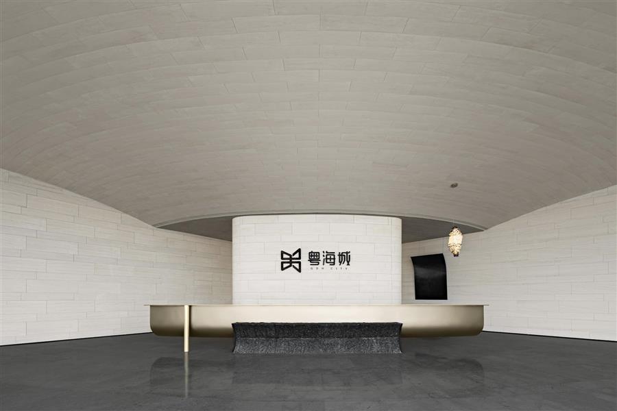 「時(shí)間」和「空間」是互相垂直的兩個(gè)維度。貝殼型的天花造型旋轉(zhuǎn)流動(dòng),構(gòu)成前臺(tái)背景,接待區(qū)的平行時(shí)空中「平衡」或「動(dòng)態(tài)」微妙持續(xù)切換。