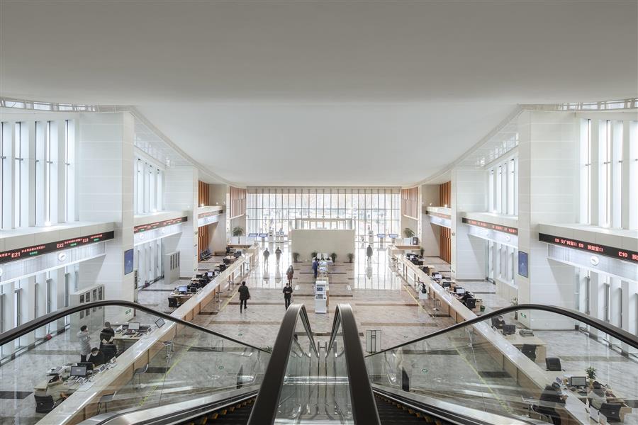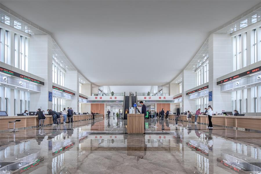 項(xiàng)目為一棟院落式建筑,占地面積57862㎡,總建筑面積40727㎡,地上四層,地下一層。作為一站式市民綜合辦事中心,結(jié)合多個(gè)主要部門于一體,縮短市民服務(wù)辦理時(shí)間。一至三層設(shè)置政務(wù)綜合服務(wù)區(qū)、證照辦理區(qū)等各類政務(wù)辦事服務(wù)廳,四層設(shè)置辦公及多功能廳等功能。