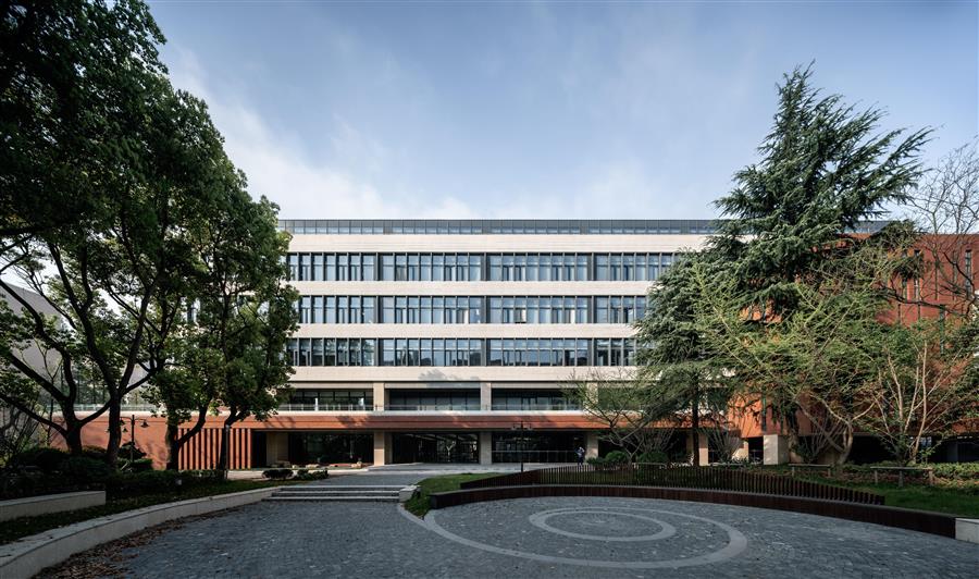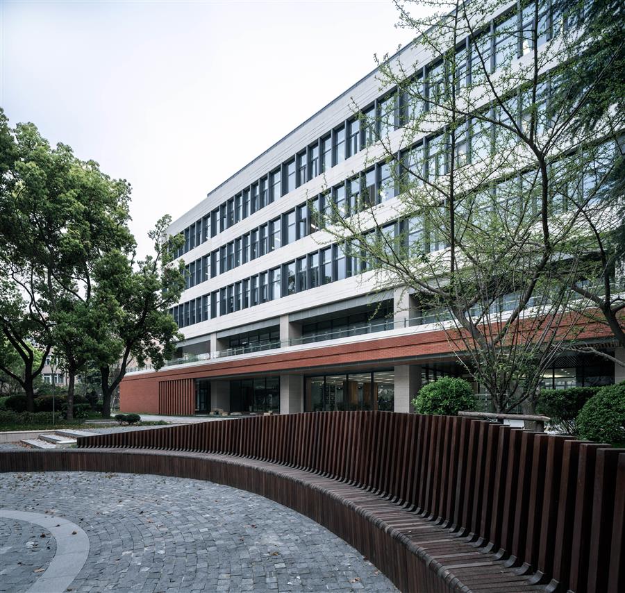 ▲ 教學(xué)樓與學(xué)校入口連接 ?章勇