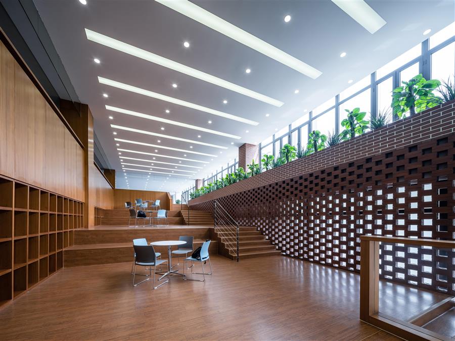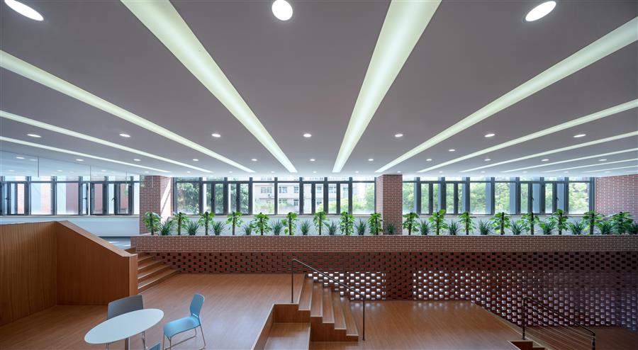新建后的建筑,在擴(kuò)充了教學(xué)使用空間的同時(shí),更增加了多樣的綠化場(chǎng)地--花園式庭院、屋頂綠化平臺(tái)。建筑中處處可見兼具學(xué)習(xí)、娛樂與休憩功能的公共交流空間,為學(xué)生和老師們提供愉悅的學(xué)習(xí)環(huán)境。