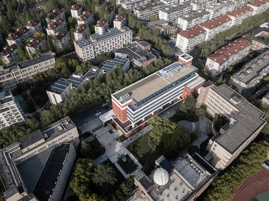 項(xiàng)目位于復(fù)旦大學(xué)附屬中學(xué)校園內(nèi),東臨政煕路,北臨國權(quán)路,總用地面積2969平方米,總建筑面積為12728平方米,主要功能為教學(xué)用房,活動(dòng)用房以及相關(guān)配套用房。設(shè)計(jì)在滿足功能要求的同時(shí)創(chuàng)作多處師生交流、展示的公共空間,增強(qiáng)空間的多樣性和趣味性。