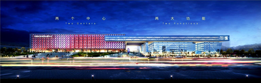 設(shè)計(jì)師匠心獨(dú)運(yùn),巧妙組合后形成綜合體,將“兩個(gè)中心”和“兩大功能”以整體形象展示給城市。會(huì)議與展覽中心各有獨(dú)立出入口,內(nèi)部交通可連通,空間使用可分可合。展場(chǎng)外預(yù)留停車區(qū),滿足布展、撤展的大型車運(yùn)輸、卸貨、等候的空間,避免干擾城市道路交通。