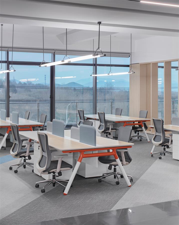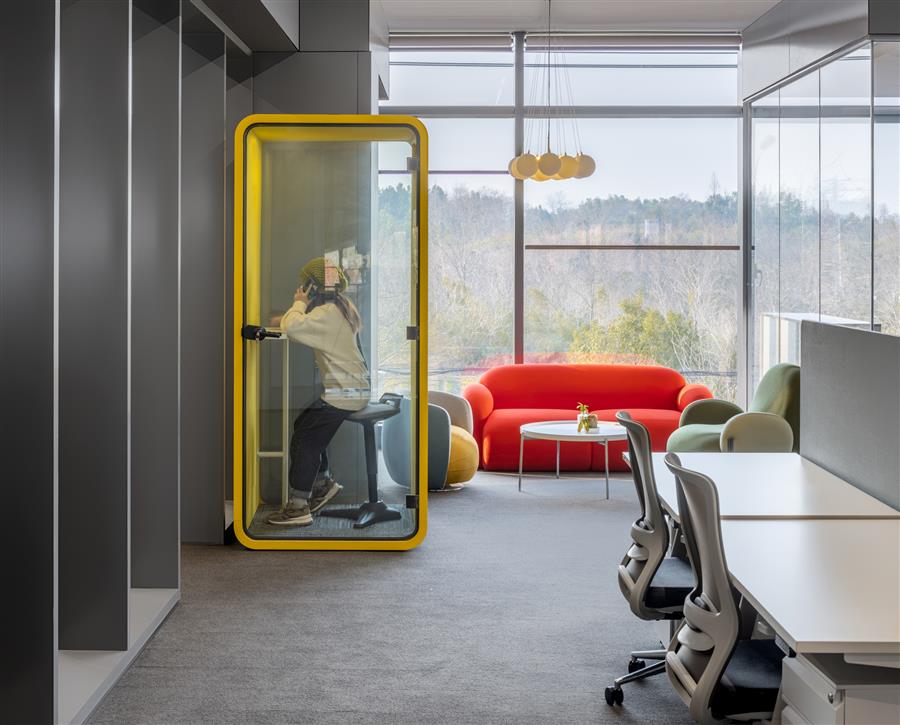 升降桌、電話亭,辦公家具和墻面飾面板等由科爾卡諾的各大產(chǎn)線提供。員工既是設(shè)計者、銷售者,也是第一手的使用者,從使用體驗出發(fā)不斷迭代優(yōu)化,為各產(chǎn)線產(chǎn)品提供真實的使用場景。