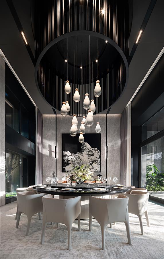 對“水之墅”客群的洞察,是設計師構(gòu)建大宅生活的起點??催^頂端風景的他們,擁有全球視野與異乎尋常的高標準,同時格局趨向釋然、心境回溯至拙樸養(yǎng)晦,不喜歡附庸設計趨勢,更傾向于獨一無二的表達,在追求家族生活、居住品質(zhì)及生活美學于一體的基礎上,進一步追求精神世界的富足。