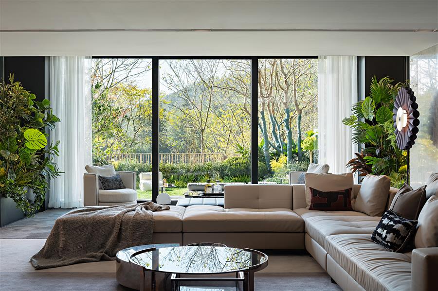 一廳之隔,步入自然,在閑庭信步的安逸之境,居者與家人、朋友的日常便陶醉于自然的無間對話之中,親近萬物,趣味悠長。