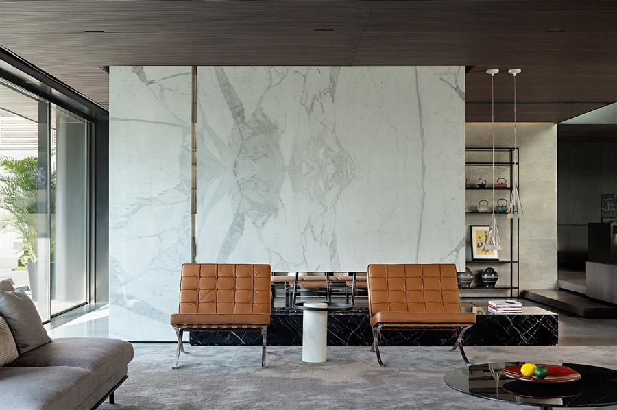 自然奢享,藝術(shù)奢享,成就了整個別墅的自由精神,純粹而動人的情緒感染力不斷蔓延。大理石的自然肌理,靜靜鋪展開時間的詩意,生活化的場景變得具象了。動靜對比、巧拙映襯,一種微妙的藝術(shù)平衡悄然發(fā)生。