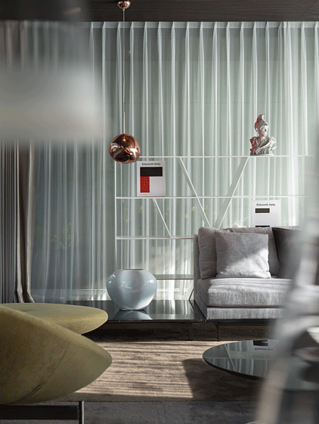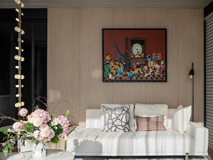 或許對屋主而言,空間是收藏生活的,而“收藏”最大的樂趣在于從藝術(shù)的角度去看世界,去碰觸藝術(shù)無邊際的寬闊與多面性。“我們希望藝術(shù)品是對空間調(diào)性的加持,更是對屋主性格的外化。人們透過藝術(shù)品看到的,絕不僅僅是藝術(shù)品本身價值或外表的淺顯訊息,更多的是屬于自我的內(nèi)在投射,是那種享受藝術(shù)的自在,開拓出閱讀與思考的豐富性?!?/p>