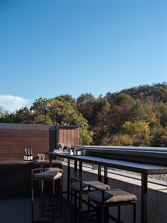 茶之閑雅馥郁、酒之微醺濃醇已然成為雅致生活的底色之一,加以雪茄之美妙,醞釀出獨具一格的審美高度。當四季輪換,景色變幻,自然環(huán)境加之于內(nèi)部的投影,轉(zhuǎn)化為東方的深邃韻腳,似乎人在茶室內(nèi)行進的每一步都踏著禪意而來,帶著幽香與靜謐的氣息。