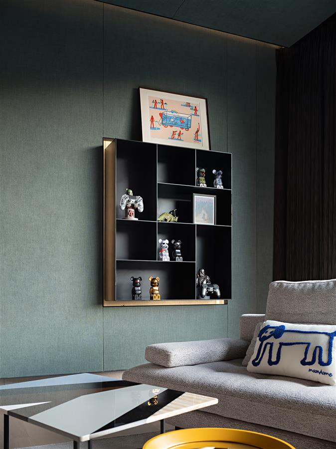 設計師賦予孩童的空間以生活方式的動態(tài)變化感,以藝術(shù)化的解構(gòu)手法讓空間極具包容性。沉穩(wěn)的墨青調(diào)與窗外蒼翠相映,詮釋獨屬于男孩房的充沛活力,豐富的物件伴隨著居者的成長步伐,存續(xù)無限記憶。