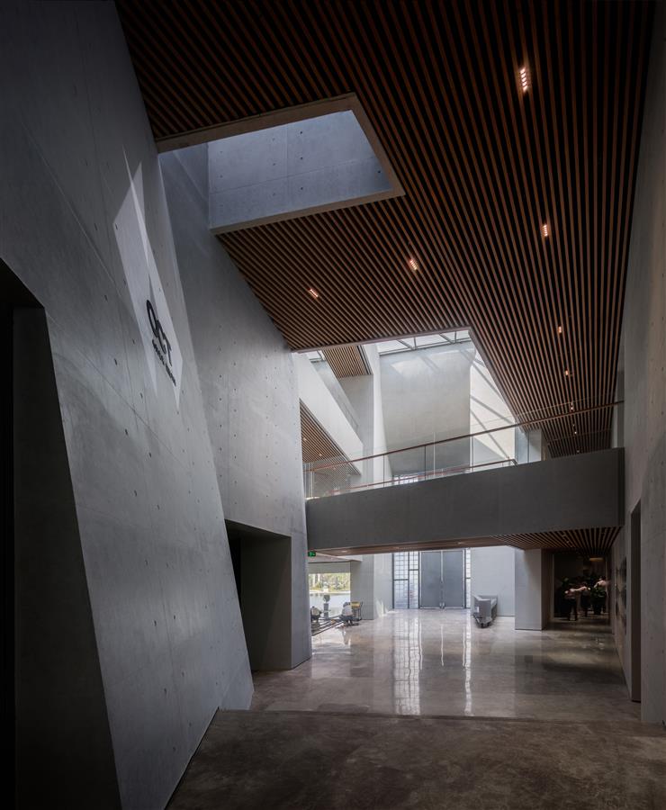 在空間游歷的過(guò)程中,相同建筑元素以不同方式及視角出現(xiàn)并疊加,空間產(chǎn)生了現(xiàn)象上的透明性,猶如行走在一副立體主義繪畫(huà)之中。交錯(cuò)的線條與疊加的幾何元素的解構(gòu)與重組打破了空間的邊界,造就了充滿驚喜的空間與光影,區(qū)別于傳統(tǒng)建筑的空間形式,創(chuàng)展中心以一種抽象幾何疊加的方式展現(xiàn)了當(dāng)代建筑的抽象藝術(shù)審美。