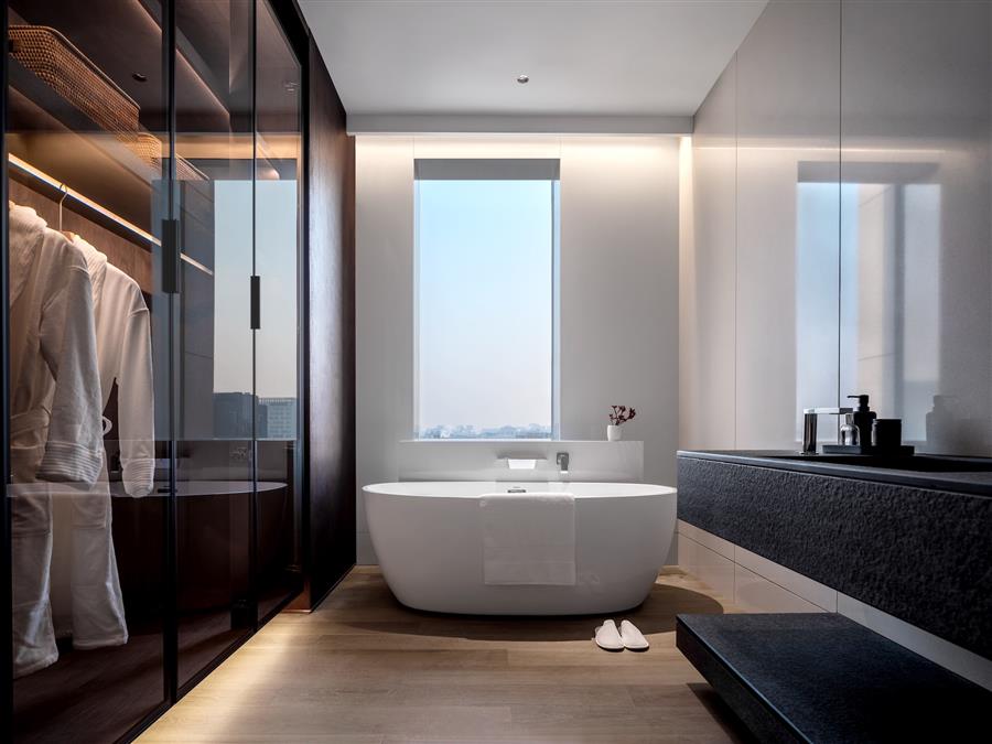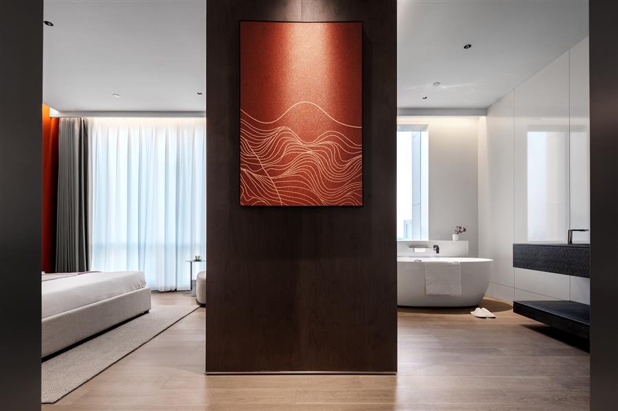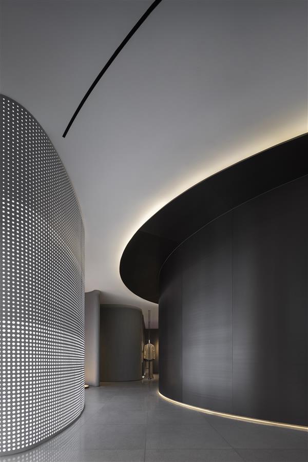 以光為語(yǔ)言,以柔美曲線為指引,設(shè)計(jì)師結(jié)合對(duì)構(gòu)圖、色彩、畫面比例的細(xì)致考究,力求于藝術(shù)化與未來(lái)感相融的場(chǎng)域建構(gòu)中,令光影形成有韻律感的舞動(dòng),讓每一位走進(jìn)的客人,隨著空間的變換感受不同角度下的光影之美。