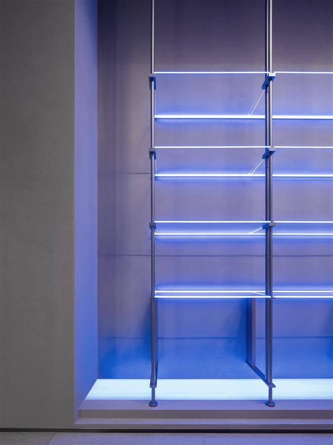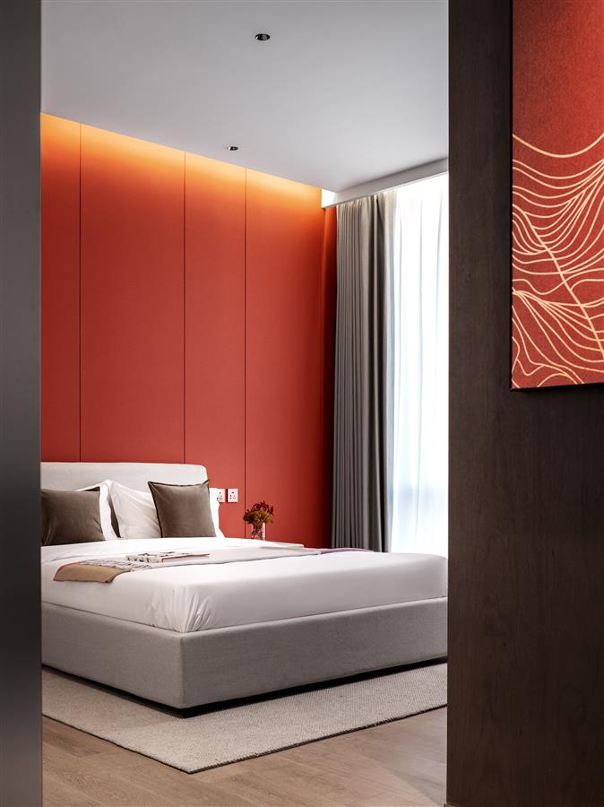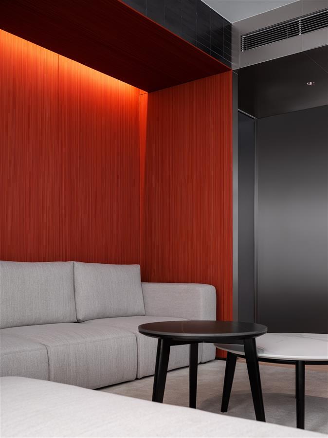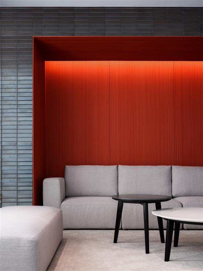 在此,設(shè)計(jì)師試圖糅合一種矛盾:感性的戲劇化場(chǎng)景與理性的產(chǎn)品技術(shù)。這一過(guò)程中,帶著地域印記的北京紅墻元素,借以嚴(yán)謹(jǐn)專業(yè)的燈光角度,融合為富有特色的記憶點(diǎn),令日常生活的文化風(fēng)韻以可見(jiàn)可感的形式,繪就為空間的溫度。