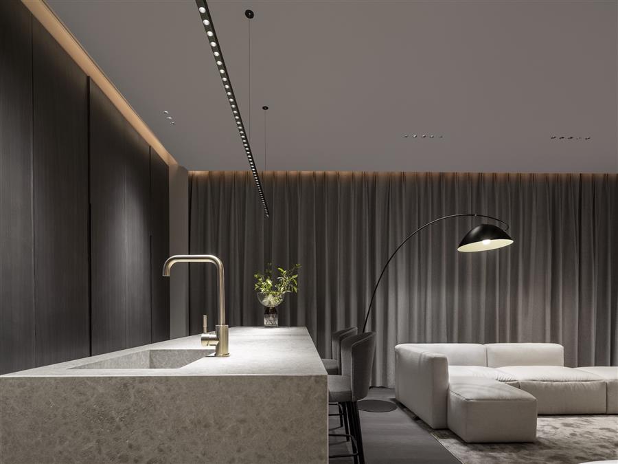 在這里,設(shè)計(jì)師深度探索場(chǎng)景的立體視覺(jué)感,以及不同材料在室內(nèi)空間中的交織。其中,燈光作為空間的主角,被賦予多元形態(tài)的美感表達(dá),而金屬、大理石材、混凝土等不同材質(zhì)的銜接,與之碰撞而產(chǎn)生的場(chǎng)景美學(xué),又令空間具備著豐富的沖突與層次,予人沉浸式的互動(dòng)體驗(yàn)。