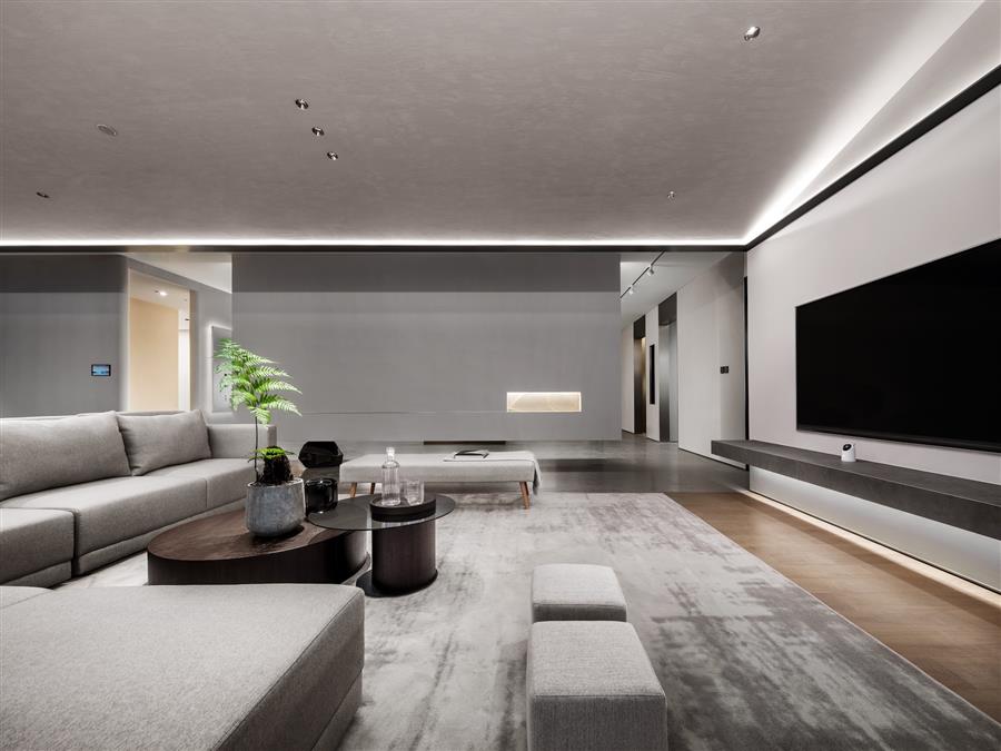 步入于此,以現(xiàn)代風(fēng)格為基底,設(shè)計(jì)透過(guò)全黑外立面、金屬配件與立體線條的融合,賦予空間硬朗挺括的質(zhì)感,帶給觀者簡(jiǎn)潔而富有美感的視覺(jué)體驗(yàn),