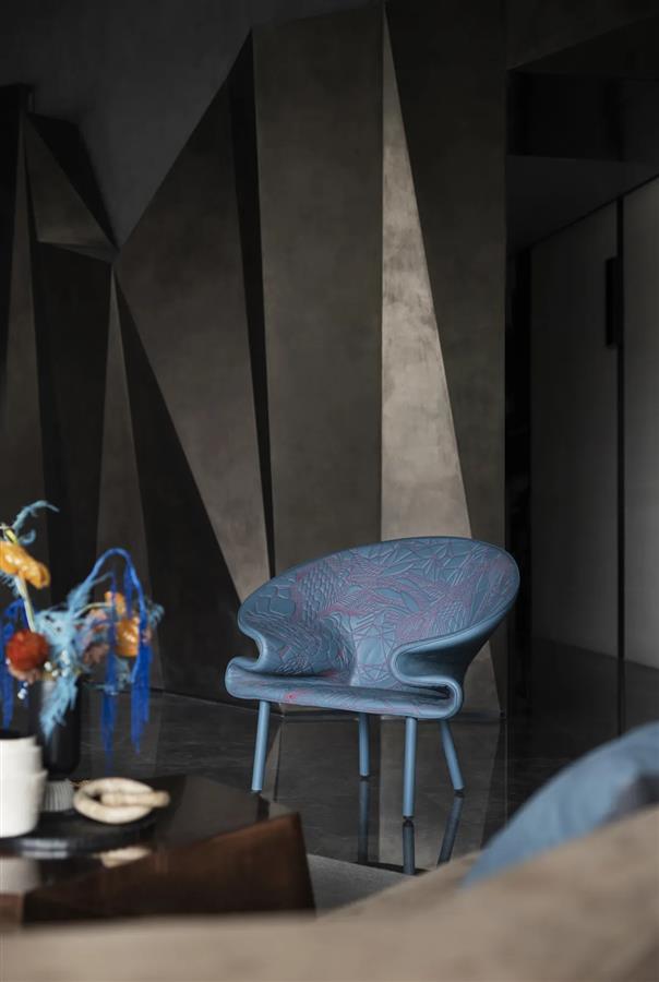 墻體的棱角構(gòu)件來(lái)自建筑的手法,在設(shè)計(jì)師的巧妙打磨下,營(yíng)構(gòu)出如同雕塑般的硬裝界面,讓立體而有型的截面兼具了開(kāi)放性和復(fù)合性。不同于平鋪直敘的常規(guī)陳設(shè),別具一格的車線是意大利品牌Moroso單人椅的靈魂所在,由點(diǎn)及面的燈具構(gòu)成了藝術(shù)抽象化的光之陣列。