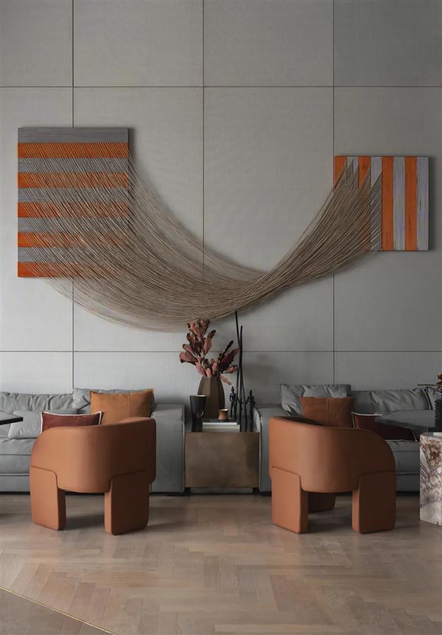 “本案地處片區(qū)商業(yè)中心,為了解讀城市交互網(wǎng)格的商業(yè)氛圍,我們?cè)谟惭b上凸顯建筑感與體塊感,強(qiáng)化動(dòng)線對(duì)功能邏輯的作用,在軟裝上引入星羅棋布的宇宙之觀,以可視化的絲路橋梁,讓開(kāi)放的城市生活與藝術(shù)、活力、自然體驗(yàn)相融?!痹O(shè)計(jì)師解說(shuō)道。
