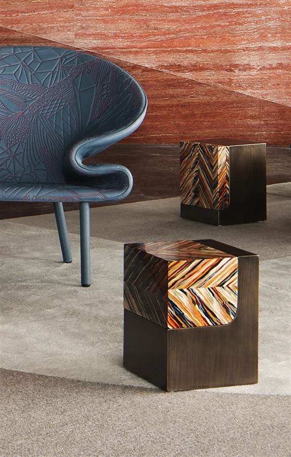 層層切割的金屬、石材與木材,構(gòu)成了硬裝的堅(jiān)實(shí)“骨骼”,從多面墻的銜接中圍合起空間的無(wú)限張力,散發(fā)出不被外界干擾的神秘張力。歷史的層層“鎧甲”變幻為硬裝設(shè)計(jì)的塊面化連接,呈以不同明暗度的色塊形態(tài),復(fù)古和創(chuàng)新碰撞出新的火花。