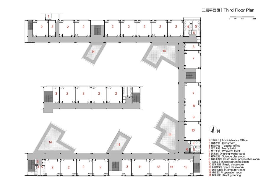 The small boxes and verandas fragment the large courtyard into pocket parks of different sizes. When students gathered in the parks between classes, they can play and relax in the beautiful landscape and acquire energy from the nature.