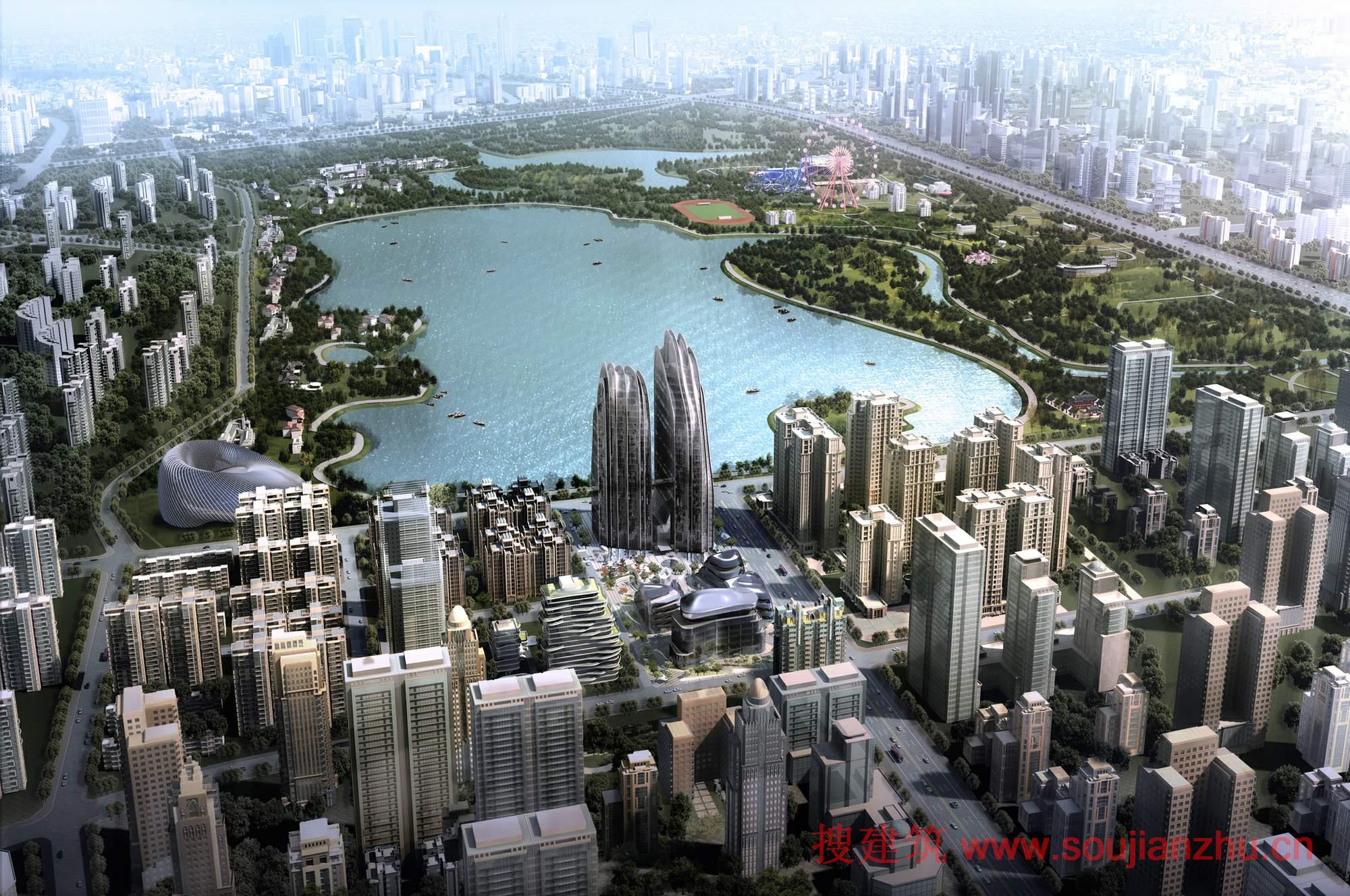馬巖松解釋說,“設(shè)計(jì)開始的理解是該公園場(chǎng)地的一部分:運(yùn)用湖光山色的自然美景,建筑綜合體可以理解為一個(gè)未來的城市山水畫:高樓大廈建筑群作為峰,個(gè)別寫字樓為斜坡,高檔寫字樓作為山脊,住宅樓作為山脈,結(jié)合古典園林元素,如湖泊,溫泉,森林,溪流,山谷,巖石和山峰?!?/p>