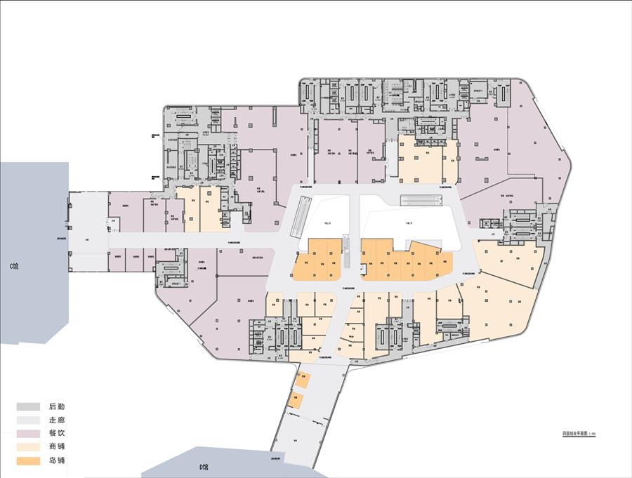 E館秉承了各場(chǎng)館“互通互聯(lián),一體打造”的規(guī)劃理念,通過(guò)空中連廊、地下通道等與相鄰的C、D館相連,實(shí)現(xiàn)了大時(shí)代商業(yè)動(dòng)線的整體串聯(lián)。