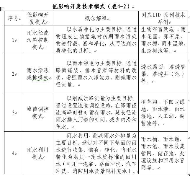 15.低影響開(kāi)發(fā):指基于模擬自然水文條件原理,通過(guò)分散的、小規(guī)模的源頭控制措施來(lái)實(shí)現(xiàn)對(duì)場(chǎng)地開(kāi)發(fā)后增加徑流雨水的水量和水質(zhì)控制,使建設(shè)區(qū)域開(kāi)發(fā)建設(shè)后的自然水文狀態(tài)盡量接近于開(kāi)發(fā)前。