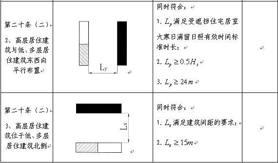 3.高層居住建筑位于低、多層居住建筑北側(cè)的,其建筑間距按第十六條有關(guān)規(guī)定控制,且不小于15米。