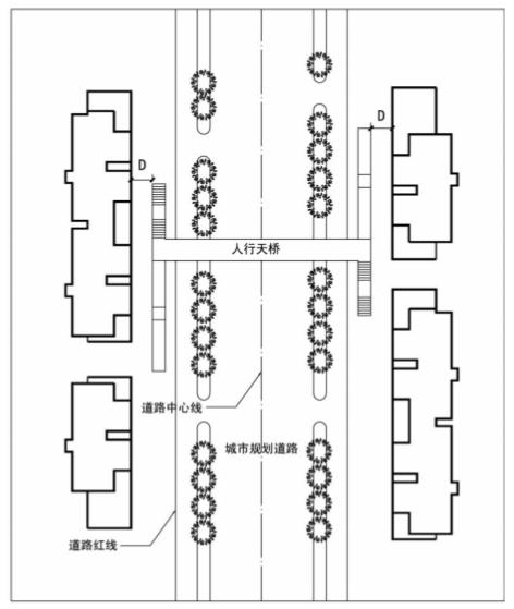 D-建筑突出部分后退人行天橋結(jié)構(gòu)外邊緣的距離 D≥7m