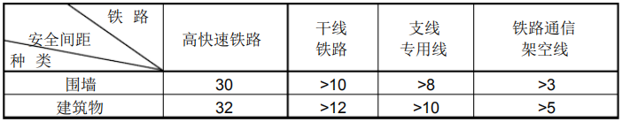 建筑物與鐵路安全間距(單位: m)