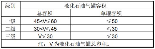 液化石油氣加氣站的等級(jí)劃分(單位: m3)