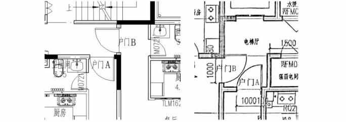 圖示1.1.13:戶門A、B的開啟方式相互影響,不合理。