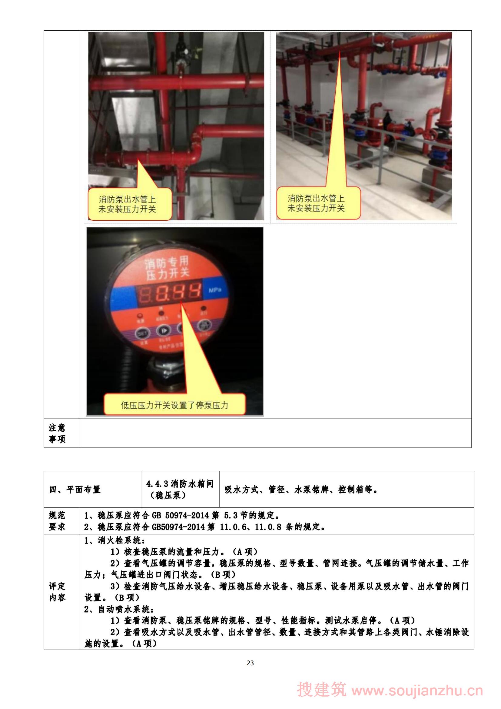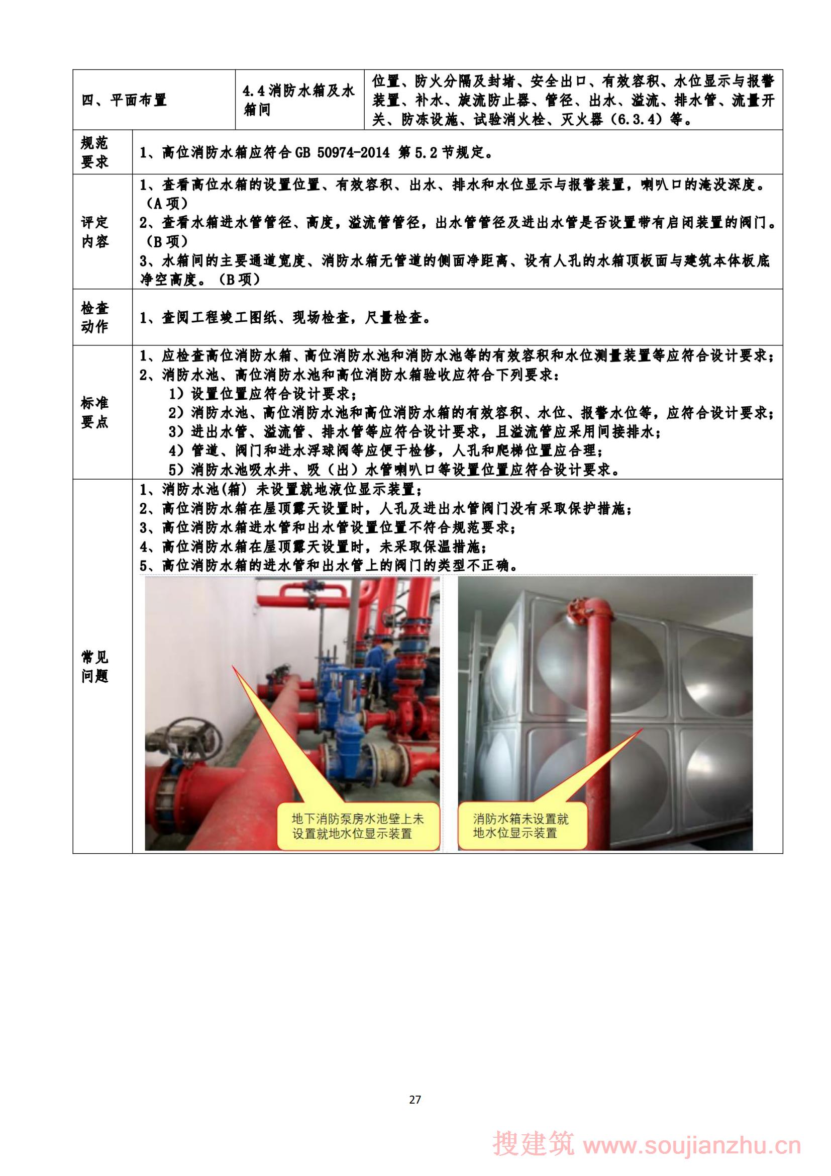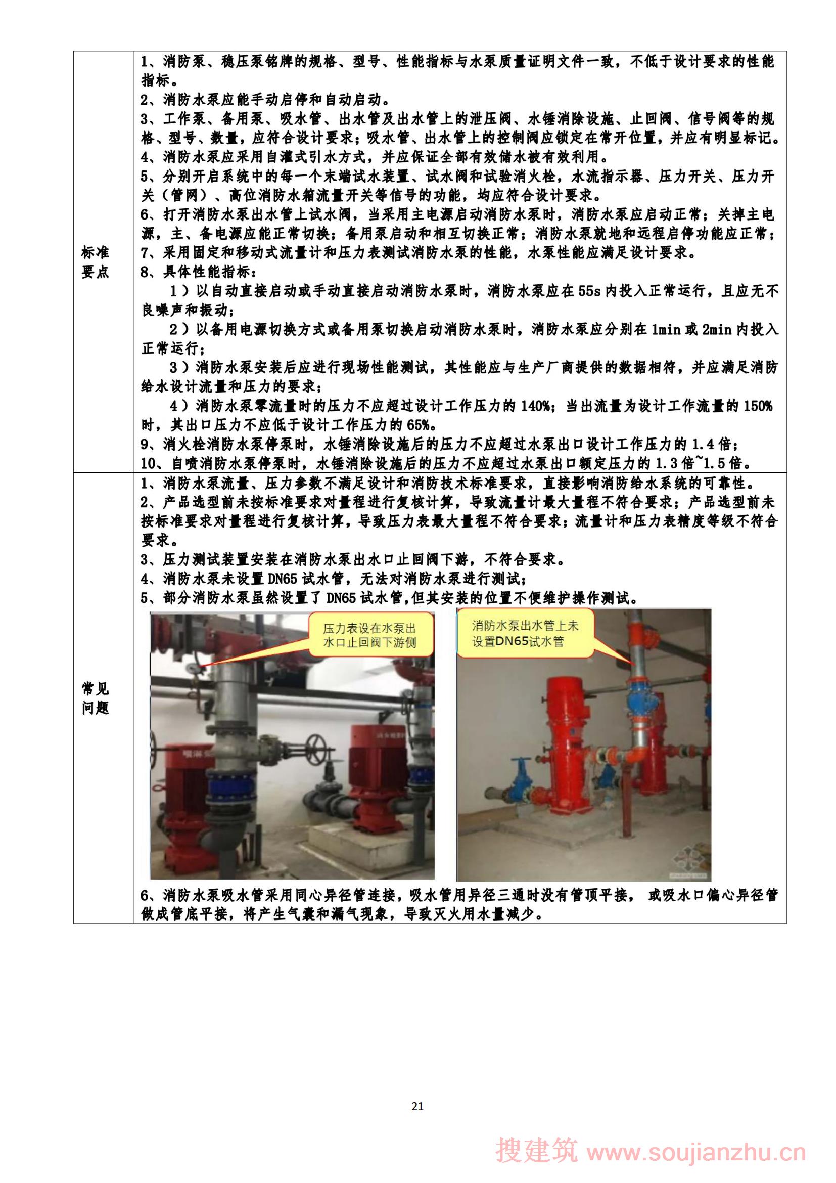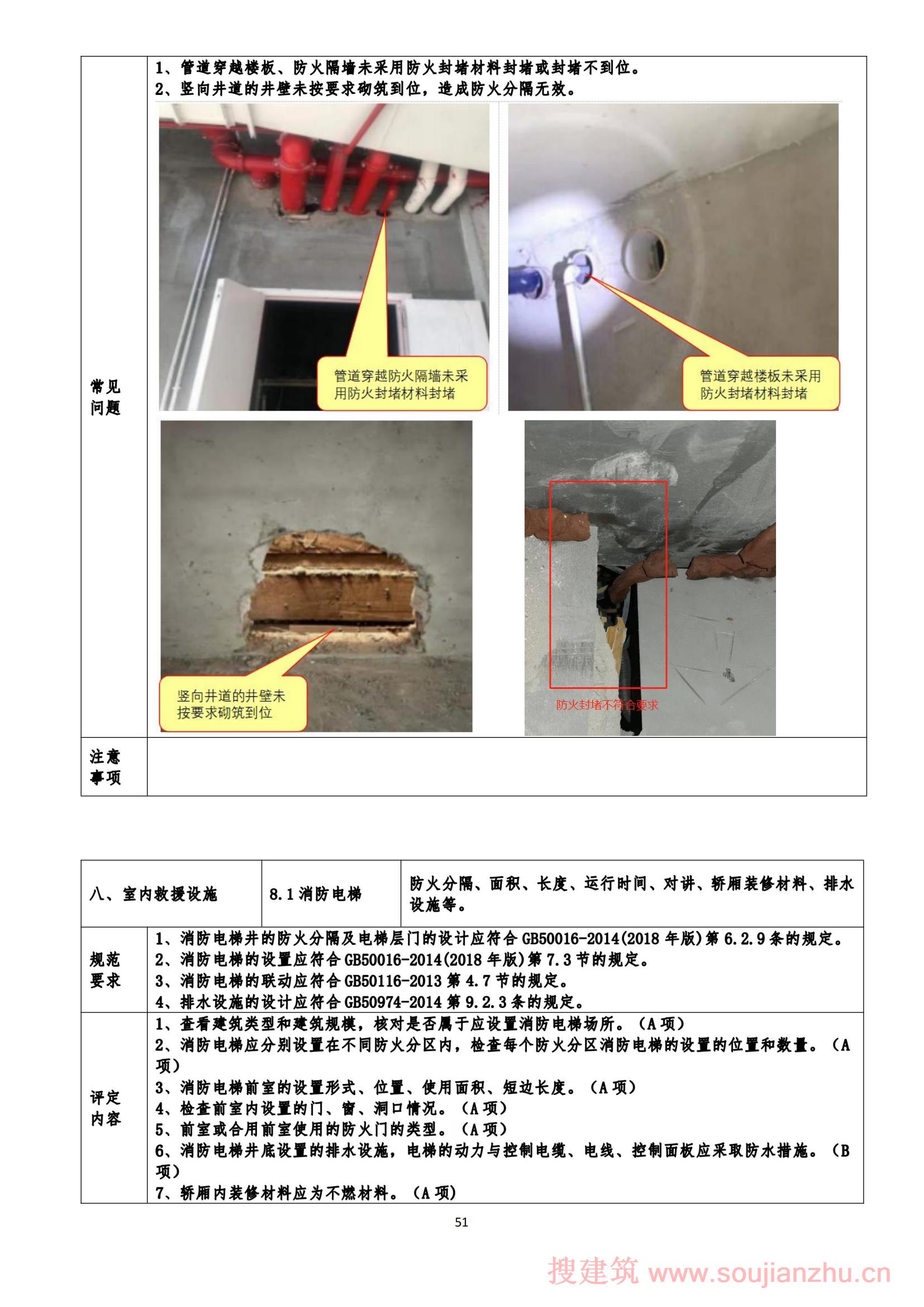 本手冊(cè)按先會(huì)議室查閱資料核對(duì)后去現(xiàn)場查看測試,先室外后室內(nèi),先公共設(shè)備用房后樓層消防設(shè)備房,先地下樓層(含公共設(shè)備用房)后首層、減壓分區(qū)層、標(biāo)準(zhǔn)層、頂層、屋頂層的路徑原則進(jìn)行組織驗(yàn)收,對(duì)驗(yàn)收部位涉及到的全專業(yè)消防設(shè)施進(jìn)行評(píng)定。共分為三個(gè)章節(jié):第一章,常用工作程序和常用路徑介紹,第二章,驗(yàn)收部位、節(jié)點(diǎn)表;第三章,消防驗(yàn)收部位相關(guān)的規(guī)范要求、評(píng)定內(nèi)容、檢查動(dòng)作、標(biāo)準(zhǔn)要點(diǎn)、常見問題、注意事項(xiàng)等內(nèi)容進(jìn)行匯總,給消防驗(yàn)收人員提供參考。