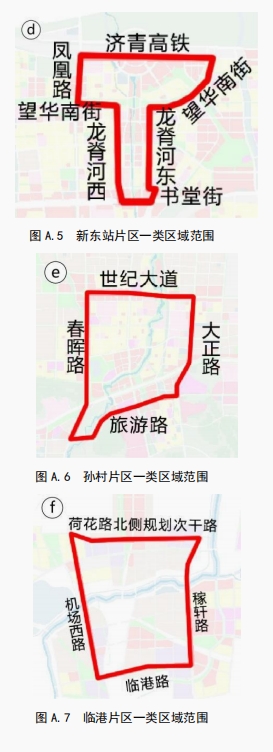 d) 鳳凰路——望華南街——龍脊河西路西側(cè)支路——工業(yè)北路——工業(yè)南路北延長(zhǎng)線(xiàn)——書(shū)堂街——龍脊河?xùn)|路東側(cè)支路——望華南街——濟(jì)青高鐵圍合區(qū)域;